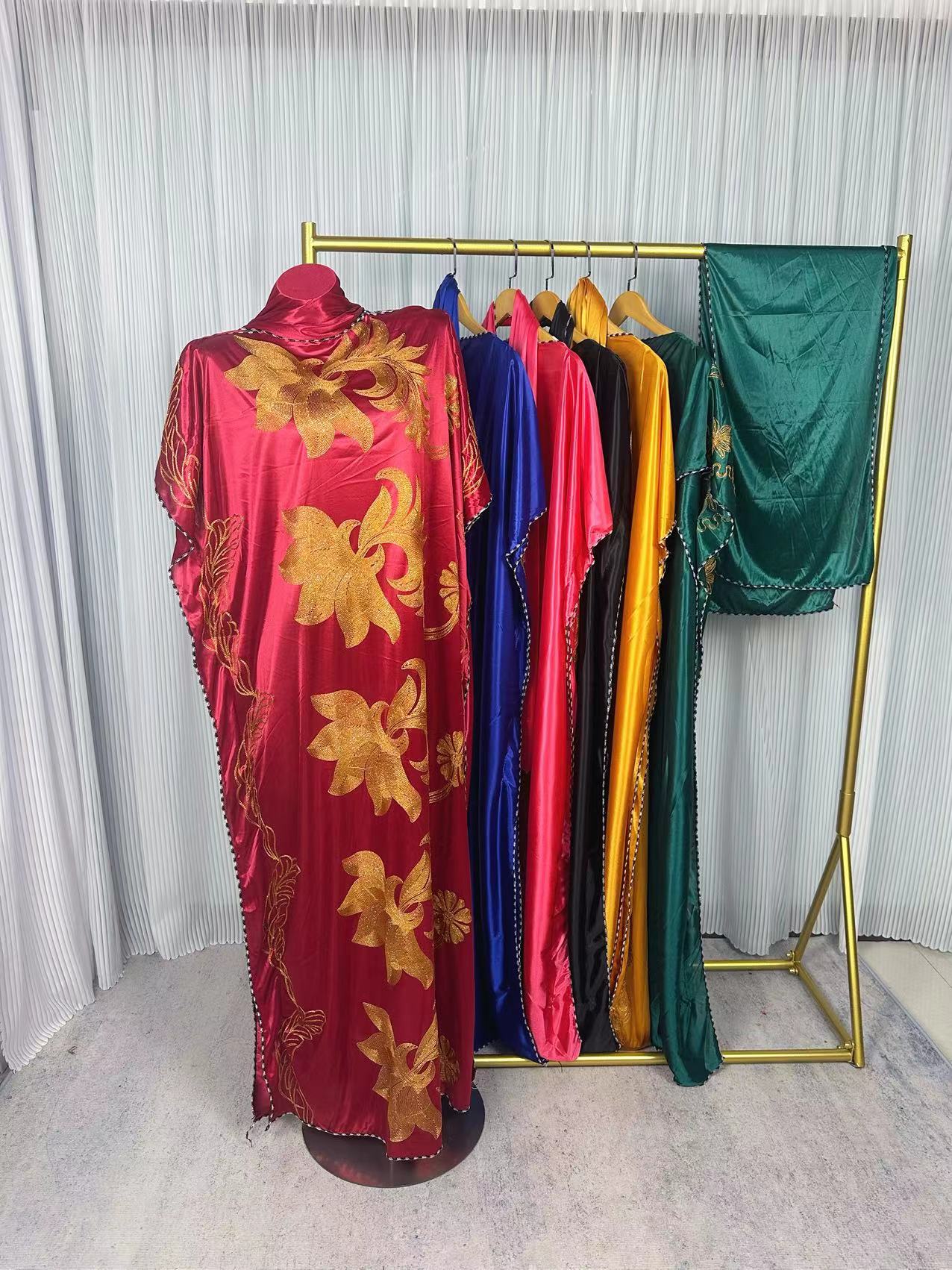 2024 Amazon Aliexpress Muslim Robe Print Women's Headscarf Muslim Robe